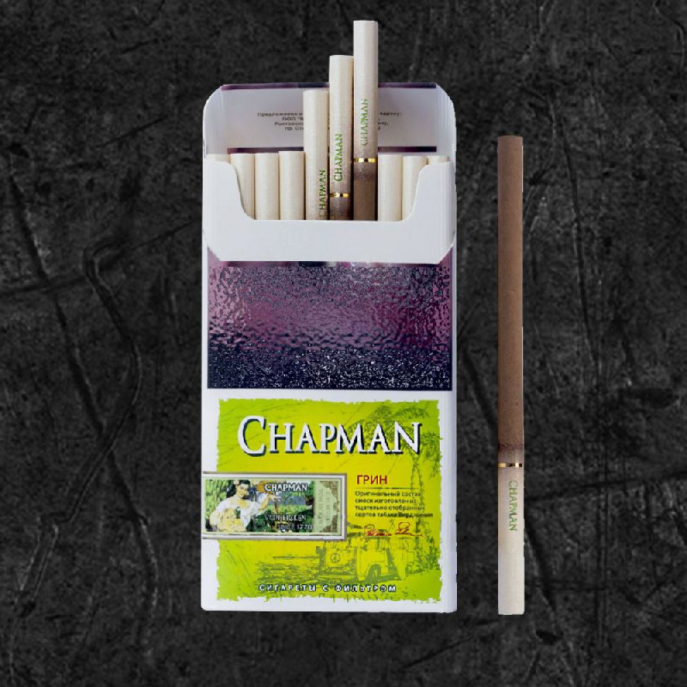 • Стильная упаковка: дизайн пачки сигарет Chapman выполнен в элегантной и минималистичной манере, идеально дополняющей образ современного человека.